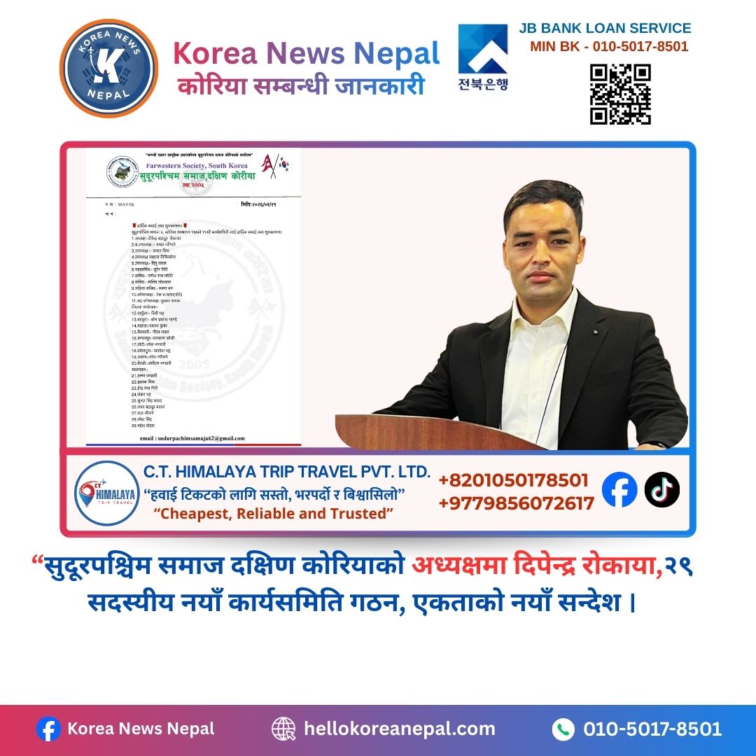 सुदूरपश्चिम समाज दक्षिण कोरियाको अध्यक्षमा दिपेन्द्र रोकाया,२९ सदस्यीय नयाँ कार्यसमिति गठन, एकताको नयाँ सन्देश